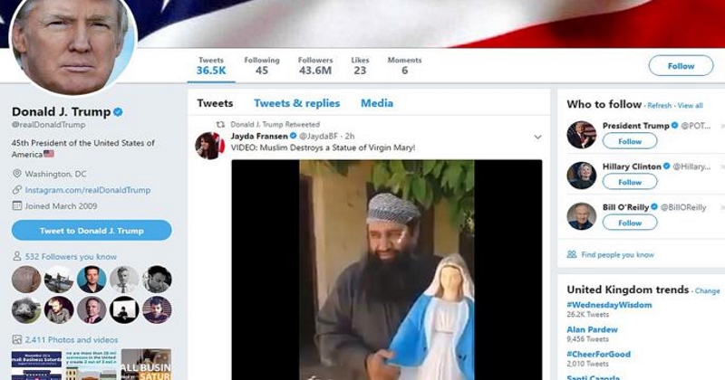 I videoen over mener Trump og Jayda vi ser muslimer drepe en person ved å kaste vedkommende ut fra en byggning. Du kan se flere menn med IS flagg allikevel mener den politisk korrekte pressen i Storbritannia det er anti-islamsk å påpeke dette.