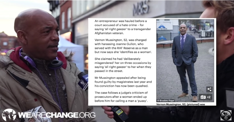 Det fikk blant annet entreprenøren Vernon Mussington brutalt erfare da han nylig ble arrestert for å ha benyttet feil kjønnspronomen da han tiltalte en transperson som Geezer (fotballsupporter).