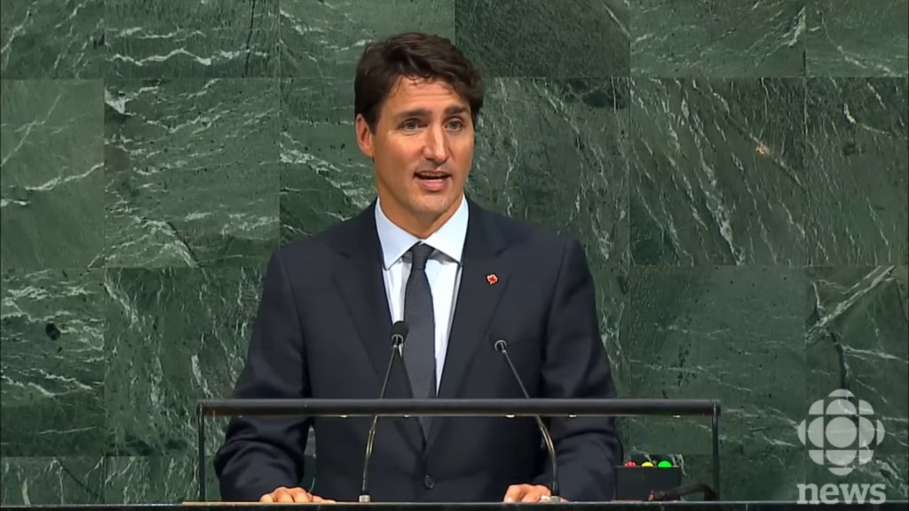 Det er da den kanadiske statsministeren Justin Trudeau avbryter henne og sier: «Vi liker å si ‘peoplekind’, ikke nødvendigvis menneskeheten ‘mankind’,» korreksjon.