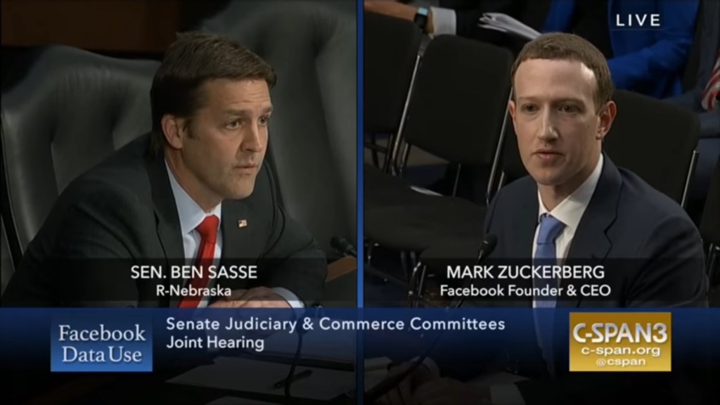 Ett av spørsmålene facebook sjefen sleit med å besvare var spørsmålet fra den republikanske senatoren Ben Sasse som lurte på om Zuckerberg kunne definere hva han anså som såkalt «hatprat», og hvorvidt ytringsfrihetsaktivister burde være bekymret for facebooks sensur regime.