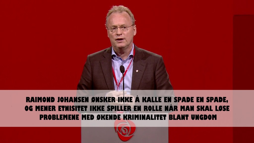 Raymond Johansen (AP) sier blant annet i flere intervju at man ikke kan koble de stadig økende problemene med kriminalitet blant ungdom i enkelte bydeler i Oslo til endringen i befolkningssammensetningen i bydelene hvor problemene er størst, og han mener det er en avsporing å se på ungdommenes etnisitet når man forsøker å finne nye tiltak for å begrense utviklingen.