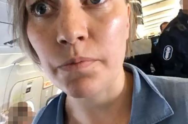 I videoen sier hun at nektet å følge instruksjonene fra flypersonellet etter at hun hadde observert at en annen passasjer var i ferd med å bli tvangsreturnert.