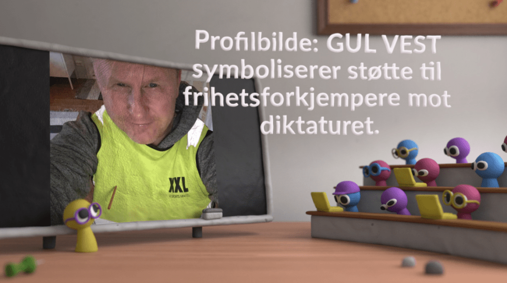 «Fra nå av skal jeg bære denne gule vesten hver gang jeg tar en tur utenfor dørene, også i dagslys, for å vise støtte til alle frihetsforkjempere rundt omkring i verden, MOT våre diktatoriske politiske ledere. Nei til diktatur FORKLEDD som demokrati. En stille demonstrasjon uten vold, som viser et klart standpunkt. «
