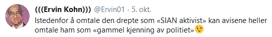 Ervin kohn med respektløs Tweet om et drept medmenneske.