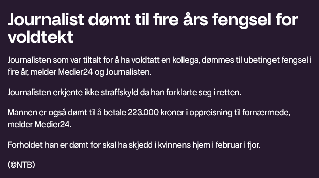 Til tross for det har jeg greid å finne kun to korte notiser på TV2s nettsider om deres egen voldtektssak. Likevel vil jeg regne disse notisene som null artikler/notiser. Dette fordi i motsetning til Atle Antonsens sak, er den dømte voldtektsforbryteren holdt anonym – og enda verre er TV2 ikke nevnt heller, men omtalt som «et norsk mediehus». Notisene er ikke engang egne saker, men sitert kort fra NTB: