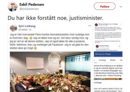 Det at Sylvi Listhaug nå sletter det mye omstridte bildet av terroristene med påskriften «AP mener terroristenes rettigheter […]