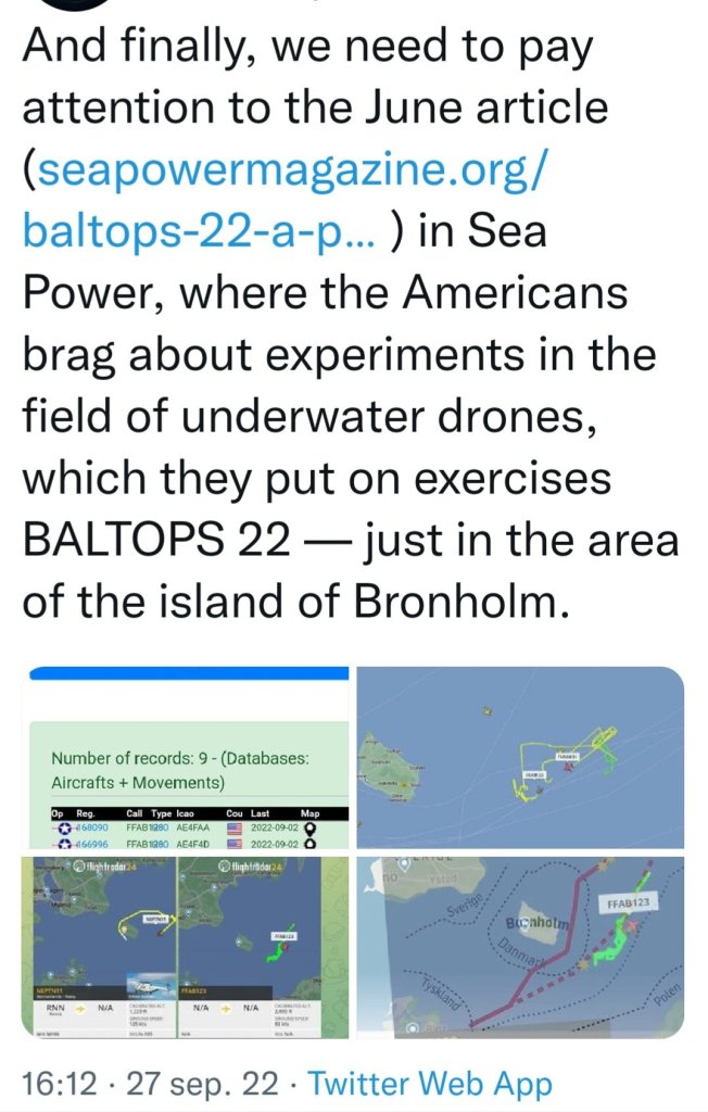 Tidningen Seapower – den officiella tidningen för Navy League – rapporterade i juni om en amerikansk övning i Östersjön, direkt över de platser där två massiva undervattensexplosioner tog ut Nord Stream-rörledningen.